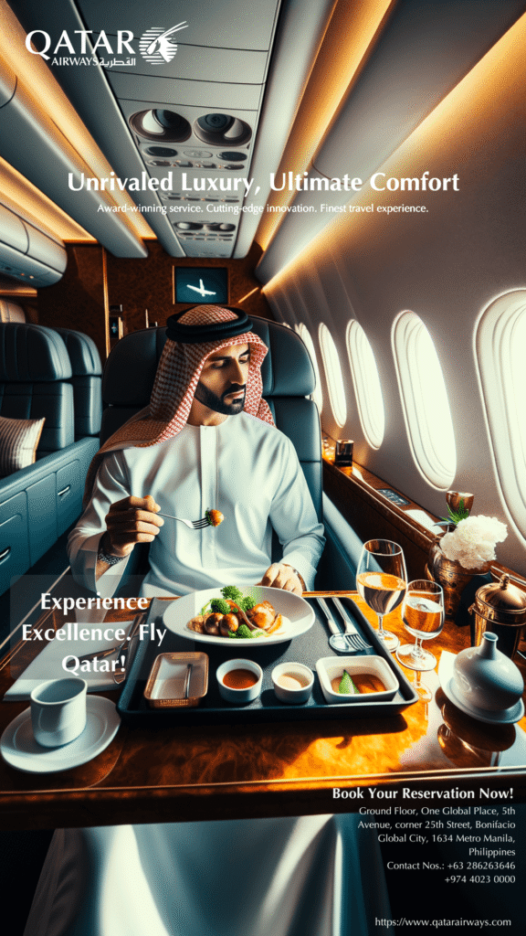 Experience world-class luxury in every journey. From seamless connections to award-winning service, every moment is crafted with comfort, elegance, and care. Fly with confidence, fly with Qatar – where excellence never stops.
